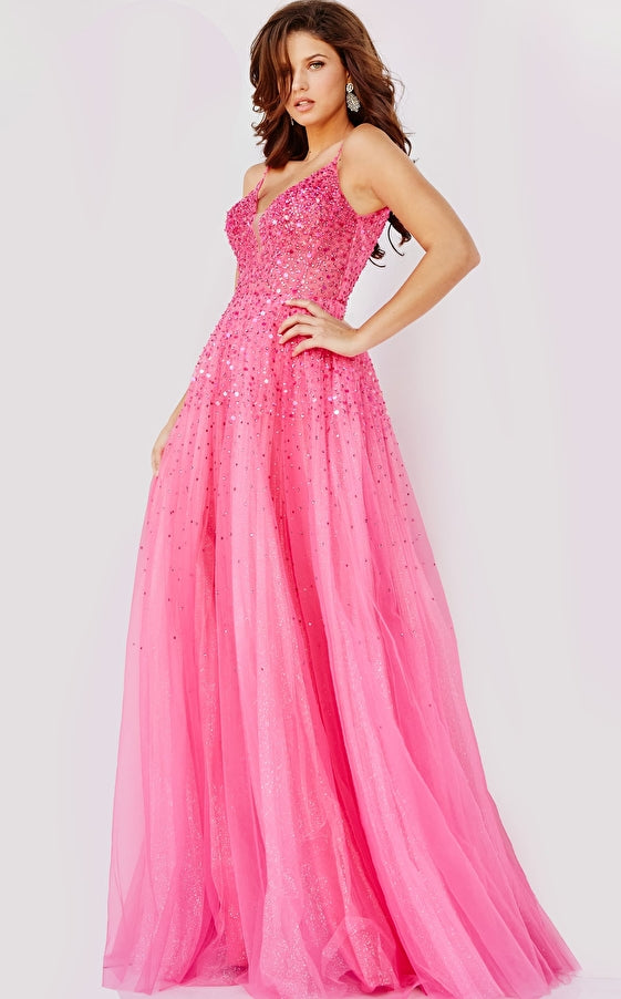 Introducing the Jovani 08408, an elegant ballgown perfect for proms or other formal events. This unique design features spaghetti straps and is embellished with elegant detailing. Crafted from luxurious fabric with a timeless style, this gown is sure to make you the star of the show.