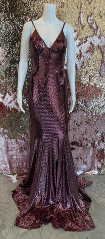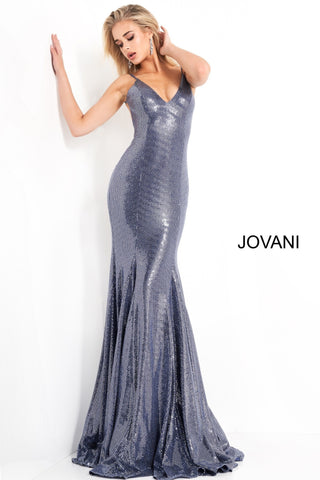 Experience confidence and elegance in the Jovani 1087. Crafted from stretch metallic fabric, this prom dress features a stunning fit and flare silhouette, V-neckline, spaghetti straps and open back for a striking look. Perfect for making a statement and feeling beautiful.