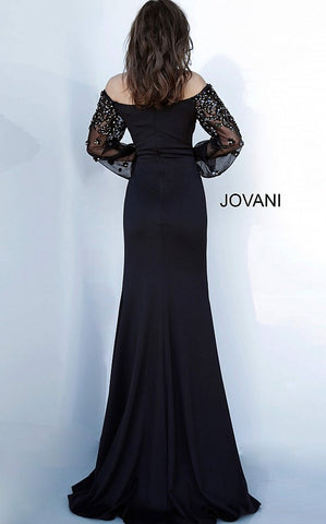 Say hello to the Jovani 1156! This gorgeous long formal gown is the perfect piece to make a statement for any special occasion. It features beaded embellished sleeves, and an off-the-shoulder cut for added glamour. Delight in wearing this stunning piece for your next event.