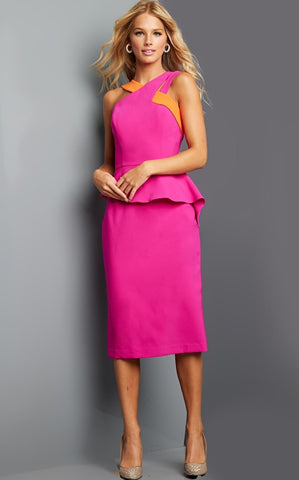 This dress comes in Black/White, Fuchsia/Orange, Peacock/Royal, Neon Coral/Pink, Fuchsia.