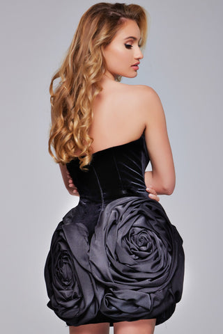 Experience the luxurious feel of the Jovani 39848 dress in sleek black velvet. The strapless design highlights your curves while the beautiful roses at the bottom add a touch of elegance. Perfect for any special event, this dress will make you feel confident and glamorous.