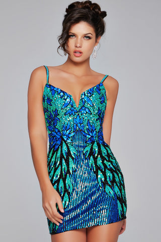 Unleash your inner glam with the Jovani 39907! This embellished cocktail dress features a fitted silhouette, v neckline, and intricate detailing. Perfect for any special occasion, the Jovani 39907 will have you feeling confident and glamorous all night long!