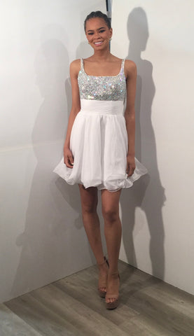 Make a statement at your next pageant or homecoming event with the Jovani 39954 cocktail dress! The flowy design and beaded top add a touch of elegance while also allowing for comfort and movement. Perfect for any cocktail occasion, this dress is sure to turn heads.