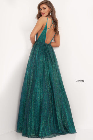 The Jovani 4198 is an elegant long formal ballgown, crafted with glitter tulle and a showstopping open back. Its timeless silhouette ensures you will look stunning from every angle, perfect for special occasions.