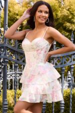 Jovani 47281 – Floral Tiered Ruffle Short Dress