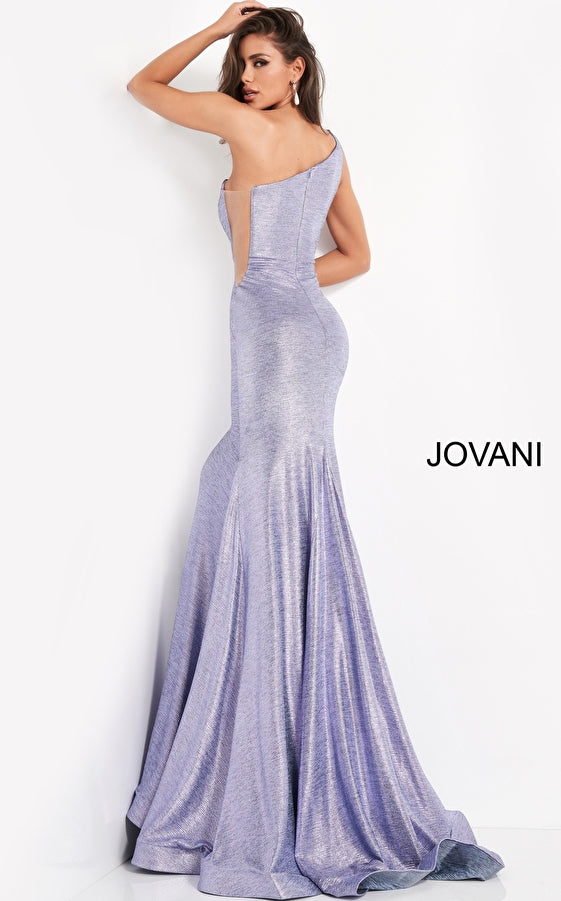Introducing the Jovani 06367 dress - the ultimate statement piece! This metallic dress features a unique one-shoulder, asymmetrical neckline for added edge. Its long train and fitted silhouette will have you turning heads at any event. Get ready to shine with Jovani!