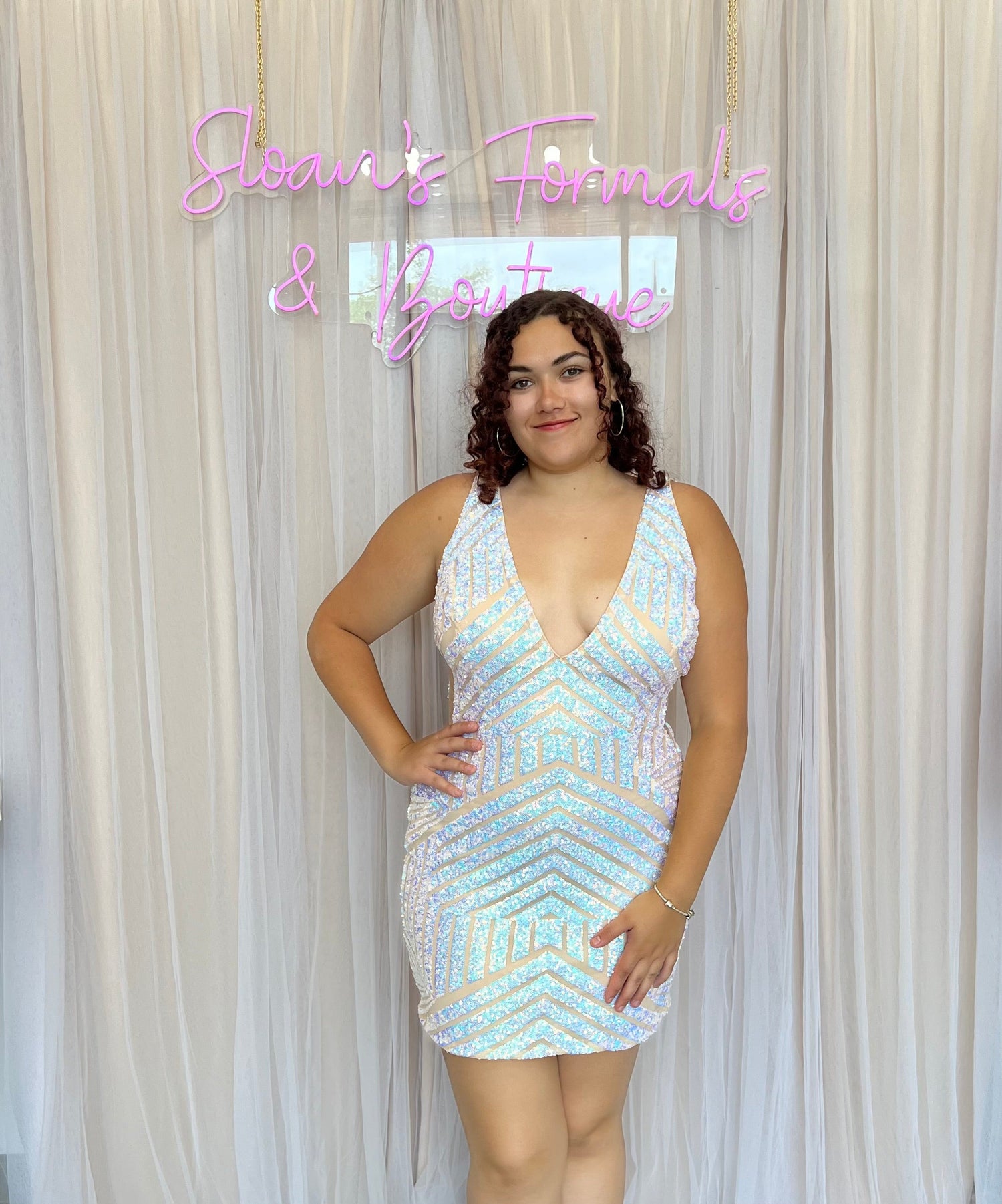 Look divine in Jovani 63899, an elegant sequin-embellished short dress with a V-neckline. This gorgeous number has an uncomplicated air of sophistication and is perfect for setting off your sparkling personality. Revel in the refined femininity of this eye-catching masterpiece.