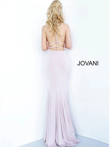 Experience luxury in the Jovani 68509A. Crafted with glitter fabric, this v-neck long formal gown features a low back and makes a glamorous statement for your next occasion. Whether it's a special event or a formal night out, this gown is sure to turn heads.