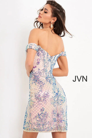Experience the ultimate in elegant style with the Jovani JVN05251 dress. The iridescent sequin detailing adds a touch of sparkle, while the off the shoulder and sweetheart neckline offer a flattering fit. Perfect for any special occasion, this dress is sure to turn heads.
