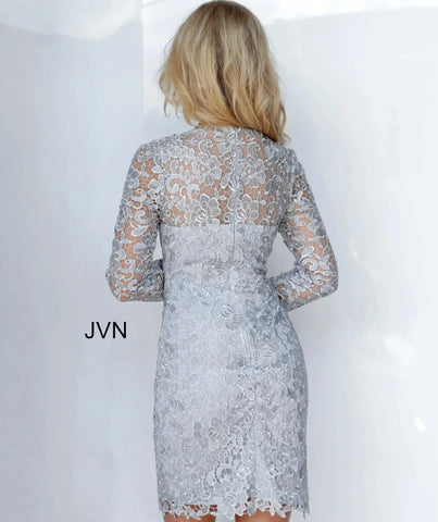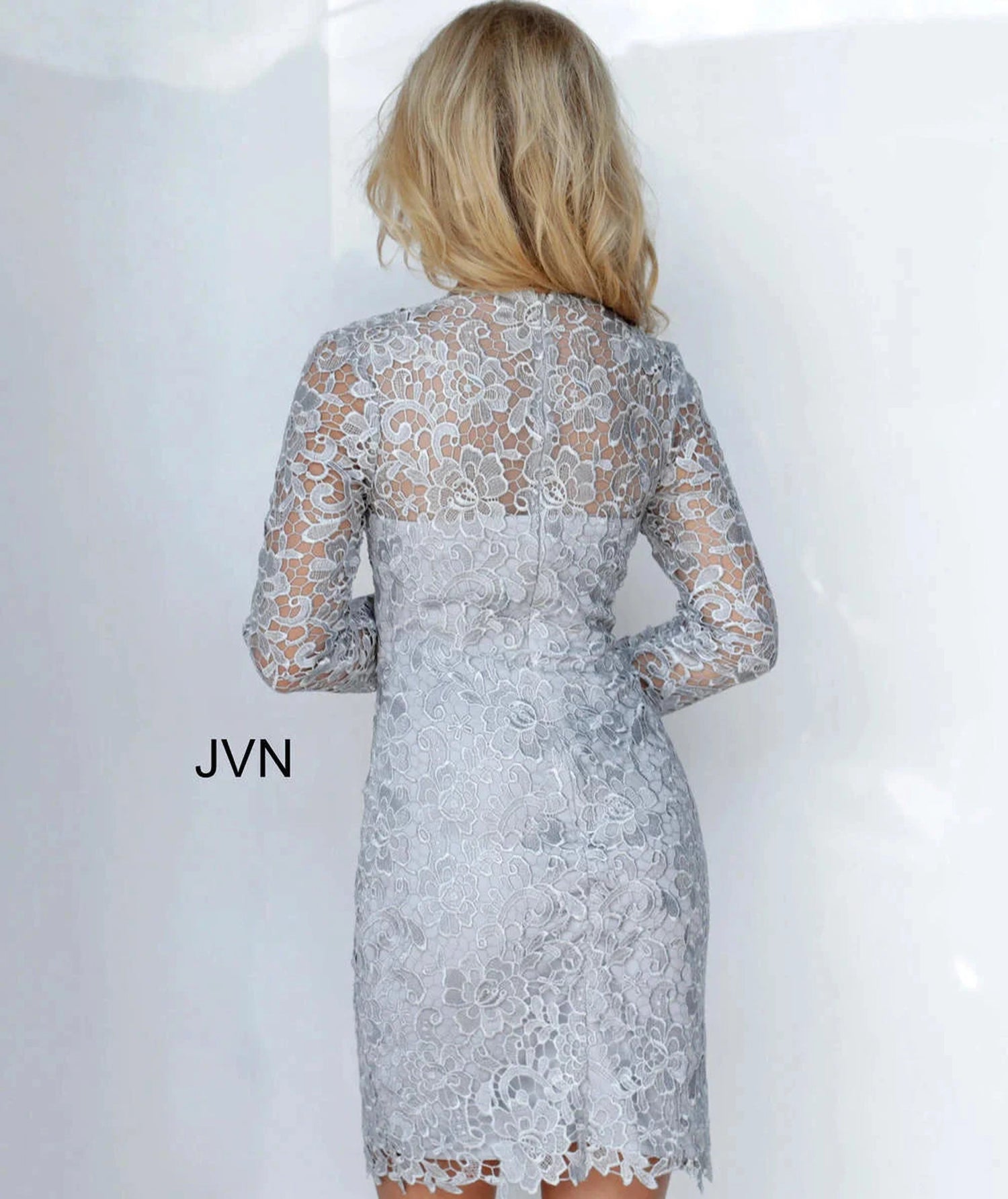 "Turn heads in this embroidered lace cocktail dress. The fitted silhouette hugs your curves while the solid lining provides comfort. The jewel neckline and long sleeves add a touch of elegance. Perfect for any event!"