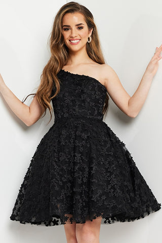 Get ready to make a statement in the Jovani K23516 One Shoulder Fit and Flare Dress! With its gorgeous floral design, this dress is sure to catch everyone's attention. Perfect for kid pageants and interviews, it's both elegant and flattering with its fit and flare silhouette. Elevate your style and confidence with this stunning dress.