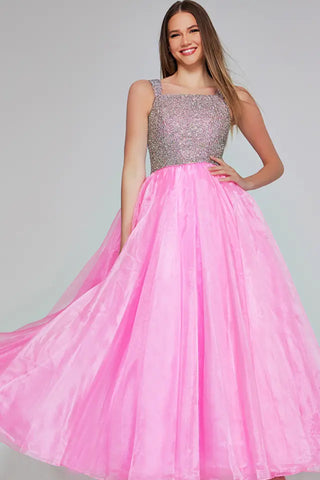 Elevate your little one's formal look with the Jovani K38261 dress! This stunning beaded ball gown boasts a fitted bodice for a flattering fit, perfect for kid pageants. Let her shine on stage and feel like a princess in this elegant and glamorous piece.