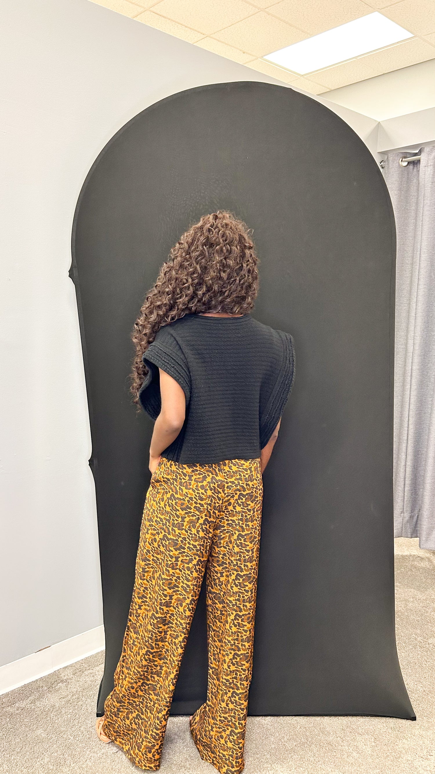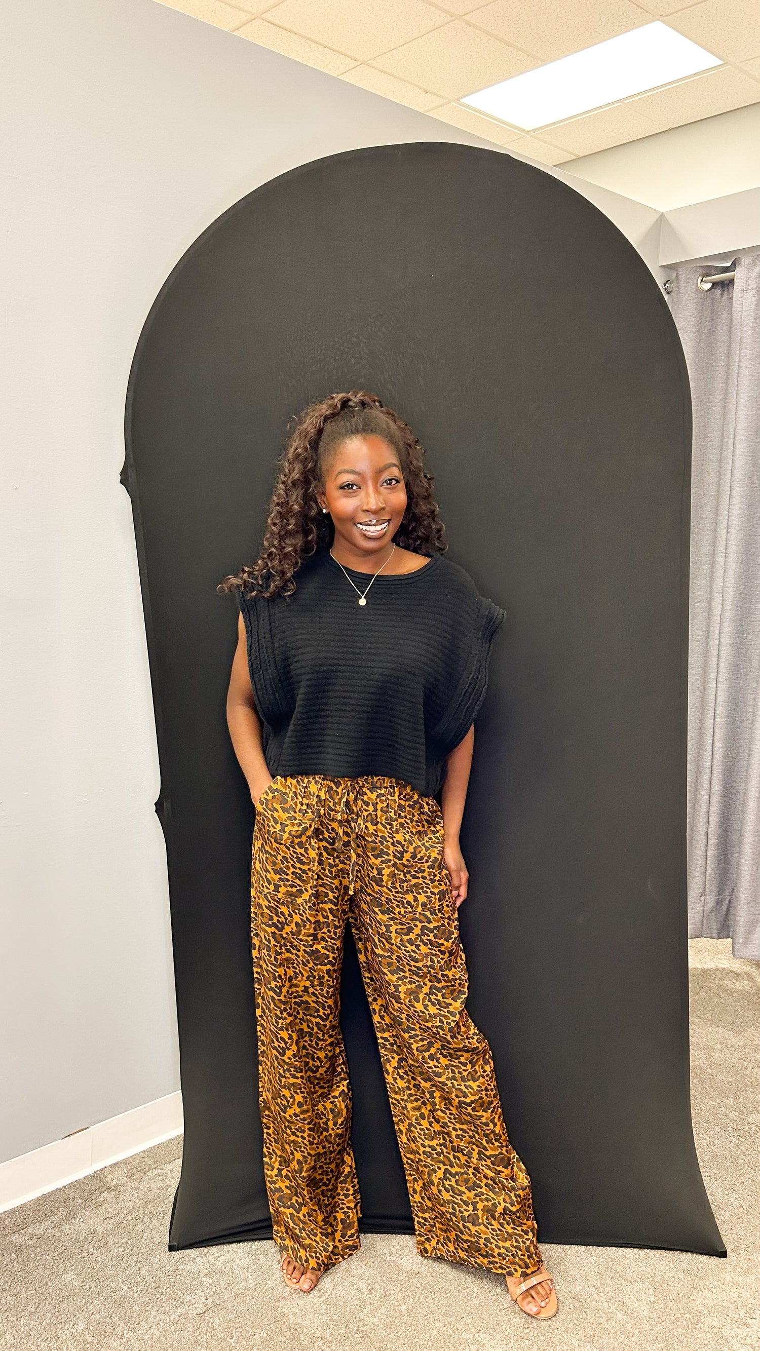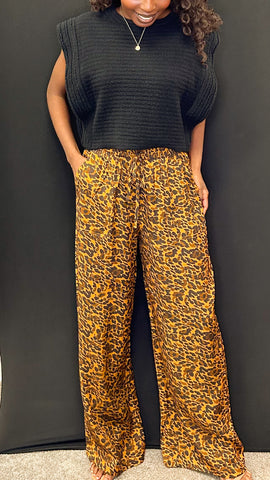 Unleash your wild side with Julietta's Leopard Pants. Featuring a comfortable elastic waistband, practical front pockets, and a trendy wide leg, these pants are perfect for making a fashion statement. Let your inner leopard roam free while looking effortlessly stylish.