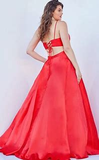 From the deep V-neckline to the lace-up back, this JVN 66673 ballgown is a timeless masterpiece that oozes sophistication and elegance. Adorned with straps and pockets, this hot pink silk dress is perfect for prom or any special occasion. Crafted with the latest in formals, this timeless piece ensures an unforgettable look.