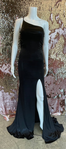 Look effortlessly stunning in this Jovani JVN08486 long one-shoulder dress. With a show-stopping high slit and an open back, this dress will make you stand out on any special occasion. The quality construction and materials ensure you stay comfortable and elegant no matter the event.