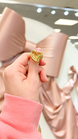 Add a touch of whimsy with the Kelce Ring, a chunky gold ring featuring a heart design. Perfect for adding a lighthearted touch to any outfit.
