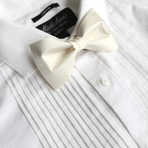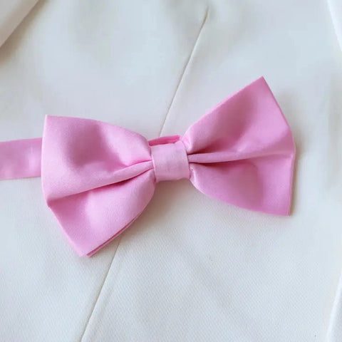 Show up in style with a single solid satin bow tie. This bow tie comes in a range of colors to choose from-- Lilac, Navy, Pink, Ivory, and Light Blue. Perfect for homecoming or any special occasion, make a statement with a single solid satin bow tie.