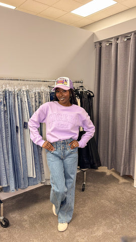 Stay cozy and warm on game day with the LSU1 Easley EMBOS CMF Crew. Show your Tiger pride and GEAUX TIGERS in style. Perfect for any die-hard LSU fan!