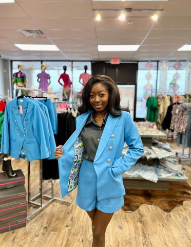 Elevate your style with our boutique Made you Look Shorts! Perfect for business and casual wear, these spring-hued shorts come with a matching blazer to complete your look. Whether you're in the office or out and about, these blue shorts will make you stand out in style.