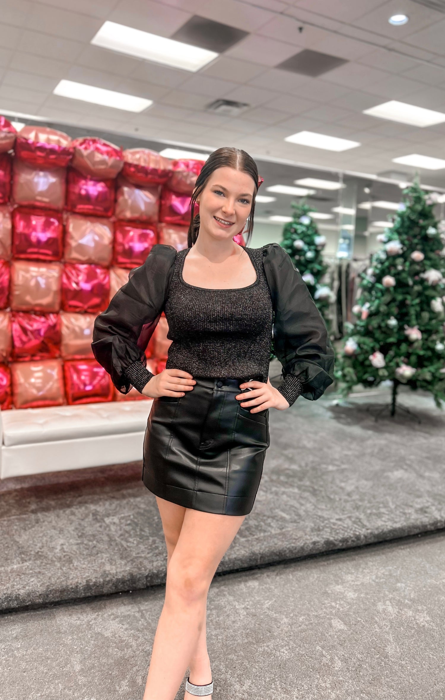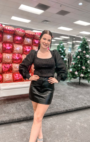 Get ready to wow with the Maxine Blouse. This blouse features sophisticated chiffon sleeves, a bold black body, and a touch of sparkle with glitter detailing. Perfect for adding a touch of glamour to any outfit. Stand out from the crowd in style!