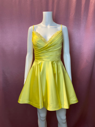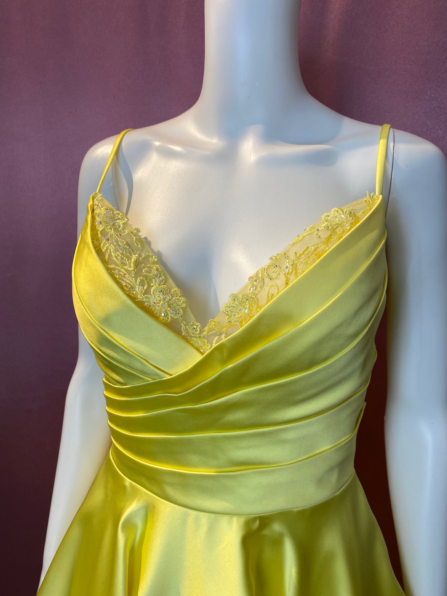 Look your best in the EW22014 satin A-line dress! This stylish piece features a sweetheart neck with embroidery and rhinestone accents, a natural waist, a horse-hair hem, and pockets for carrying your essentials. You can feel confident and glamorous in this stunning dress!
