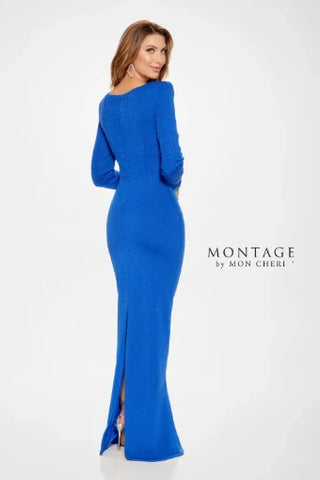 Experience elegance in motion with the Montage M851! This long sheath dress features stretch crepe fabric, stone accents, and a square neckline that highlights your natural waistline. The long sleeves add a touch of sophistication, making it perfect for any formal occasion. Elevate your style and stand out from the crowd with Montage M851.