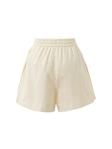 The Nala Shorts by FRNCH are the summer staple your wardrobe has been waiting for—easy, breezy, and effortlessly chic. Cut from a soft ivory textured fabric, these high-waisted shorts feature an elastic waistband with an adjustable drawstring for a customizable fit that flatters and moves with you. Their minimalist silhouette is elevated with side slits and discreet pockets, making them as practical as they are stylish.