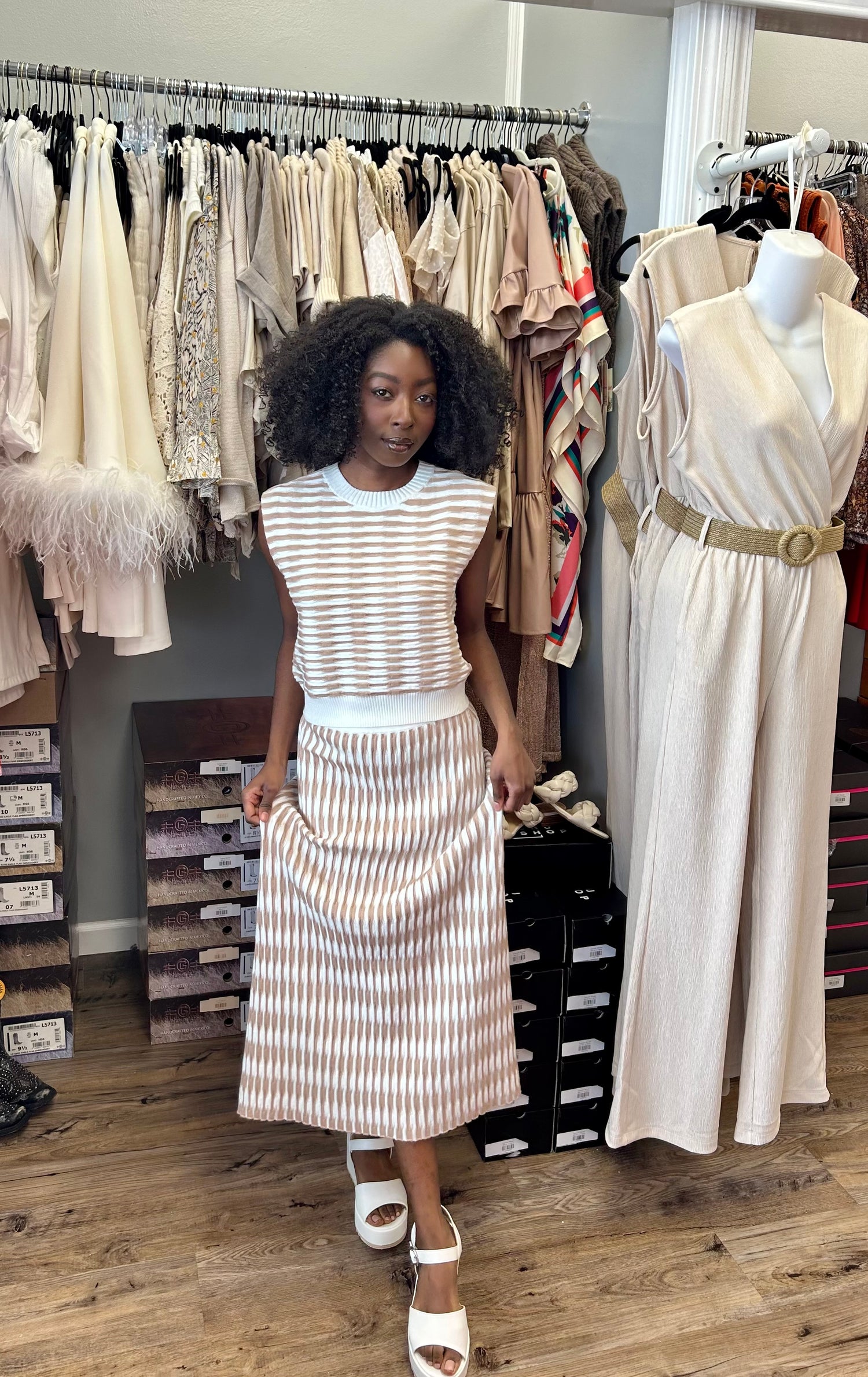 Get ready to strut your stuff in the Newport Skirt! With an adjustable waistband and midi length, this style fits true to size for a comfortable and flattering fit. Perfect for spring and summer, this skirt will be your new go-to piece.