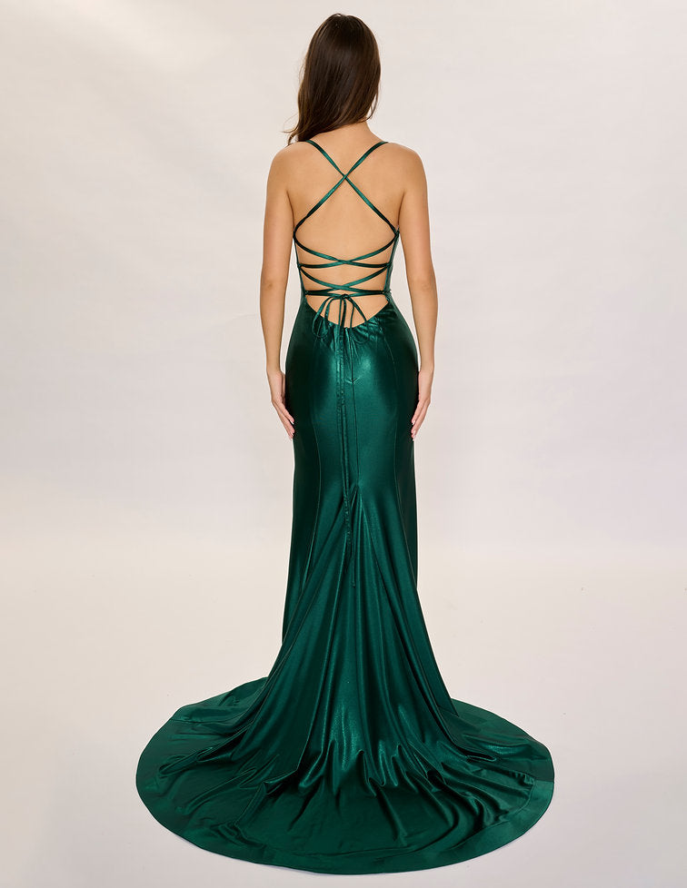 Turn heads in the Nina Canacci 6675, a long formal gown with a straight neckline (no drama there) and a corset back (because who doesn't love a good cinching effect?). Elevate any event with this effortlessly elegant dress.