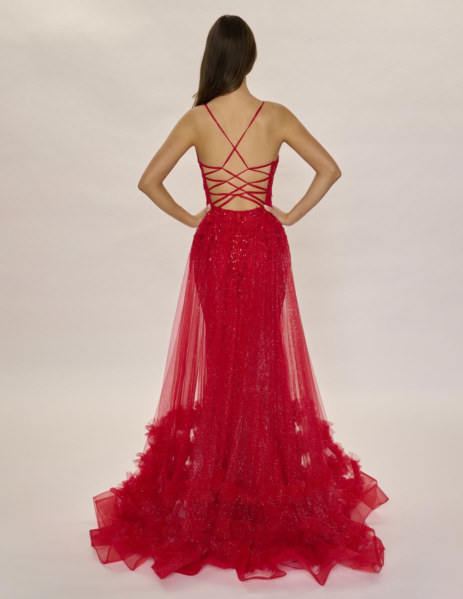 Get ready to slay in this long formal gown by Nina Canacci! Featuring a flattering A-Line Overskirt with Ruffles, a stunning Sequin V Neckline, and a playful Corset Lace-Up Back, this dress is perfect for any special occasion. Make a statement and stand out from the crowd in style!