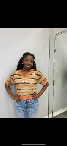 Unleash your inner fashionista with the Noreen Sweater. This playful stripe sweater features a trendy cropped length and a flattering v-neck, perfect for adding some personality to any outfit. (Quick tip: pair with high-waisted jeans for a chic look!)