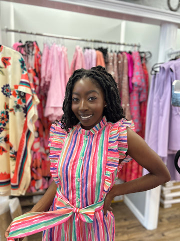 Be stylish and practical in this Boutique Dress. Perfect for summer and spring, it features puff sleeves and a button front for a flattering fit. Plus, stay organized with convenient pockets. Feel confident and chic in this sleeveless dress!