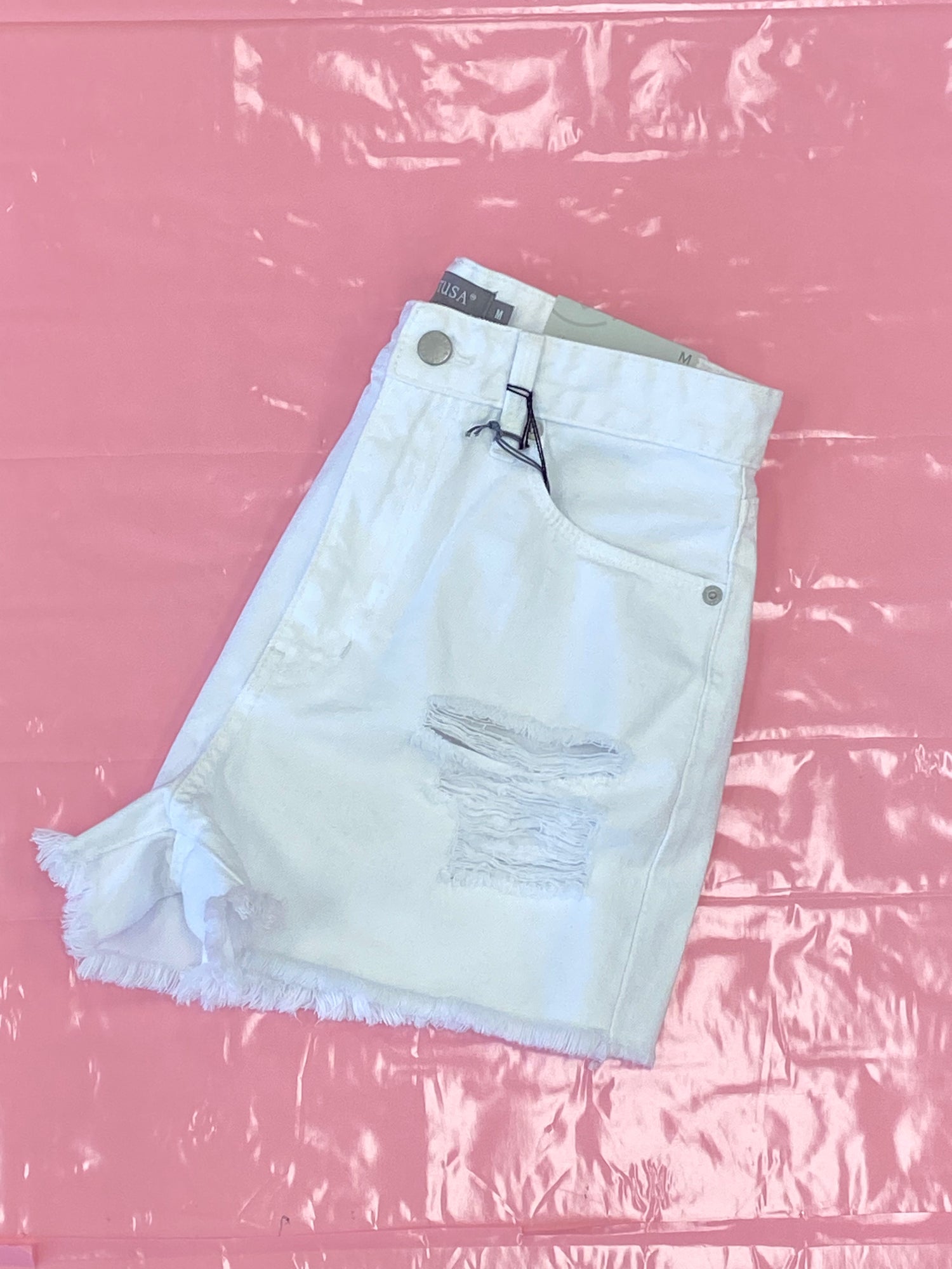 Be ready for the summer heat in these stylish P&L jean shorts. Crafted from a classic white denim fabric, these destroyed shorts feature a fray hem to give you an effortlessly pulled-together look. Make a statement and stay cool this season!