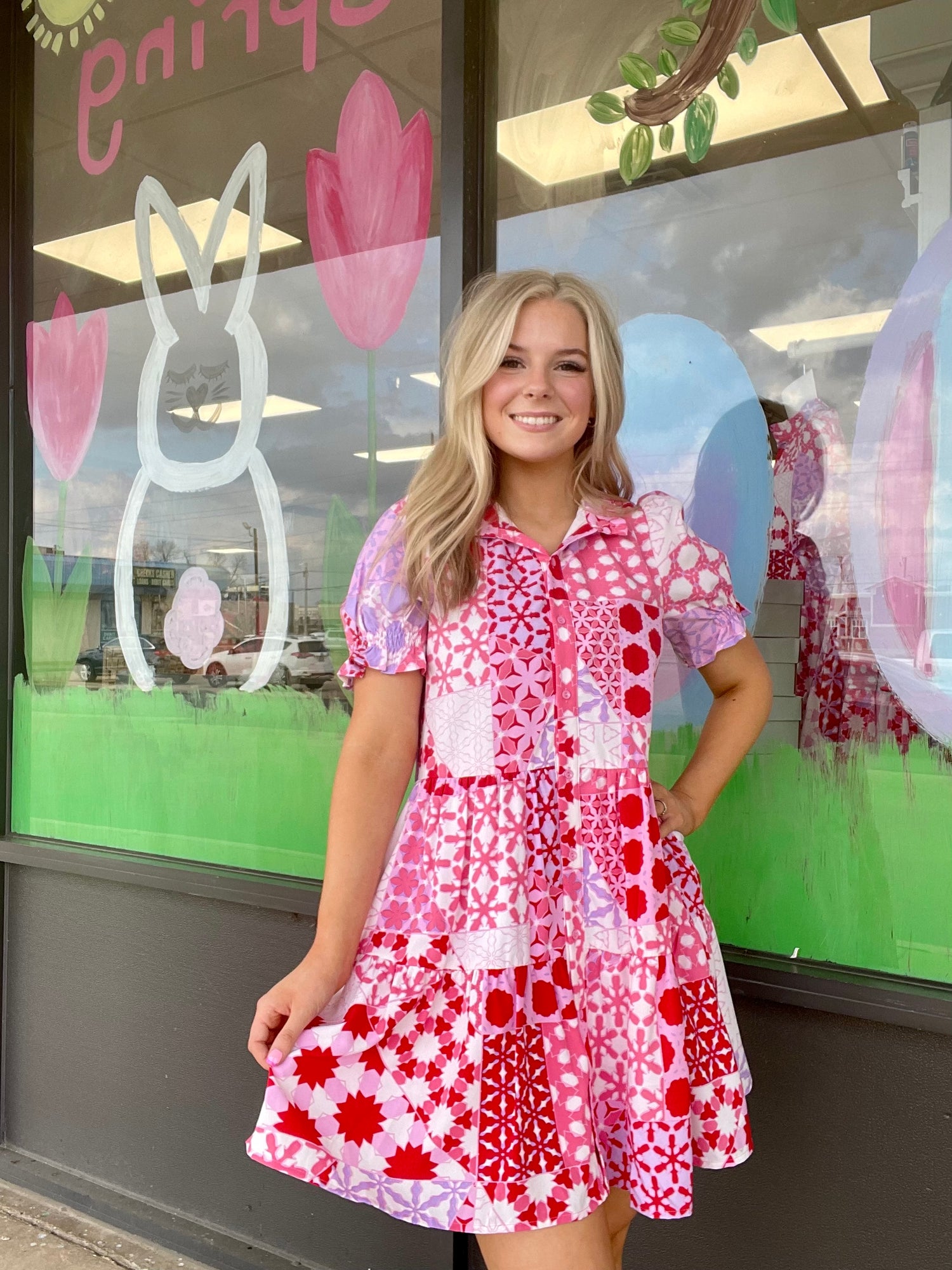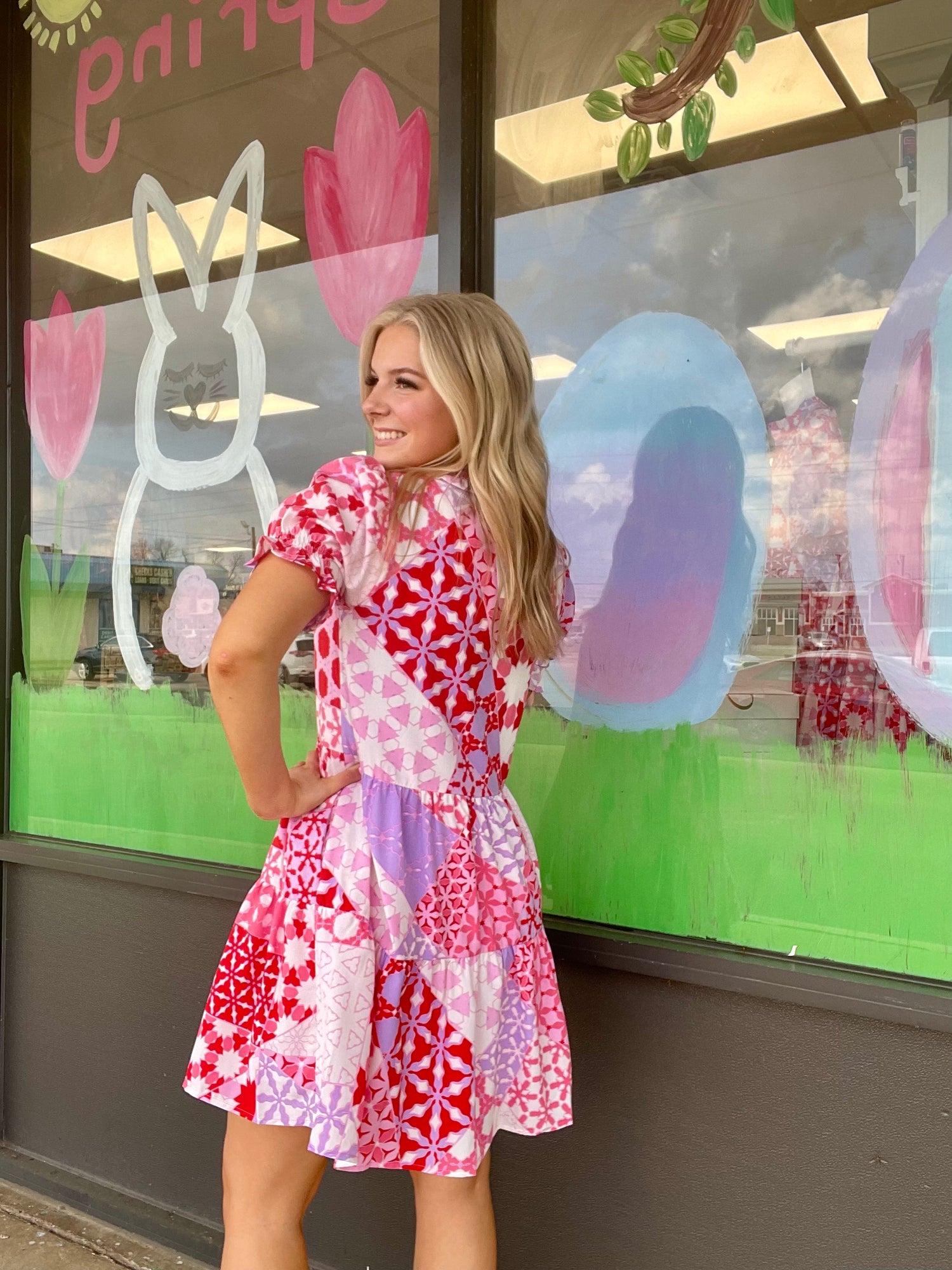 Introducing our Pinwheel Tiered Dress, perfect for the spring and summer season. This boutique dress features short sleeves and convenient pockets. With its unique and eye-catching design, you'll stand out in any crowd. Elevate your wardrobe with this luxurious and sophisticated addition.