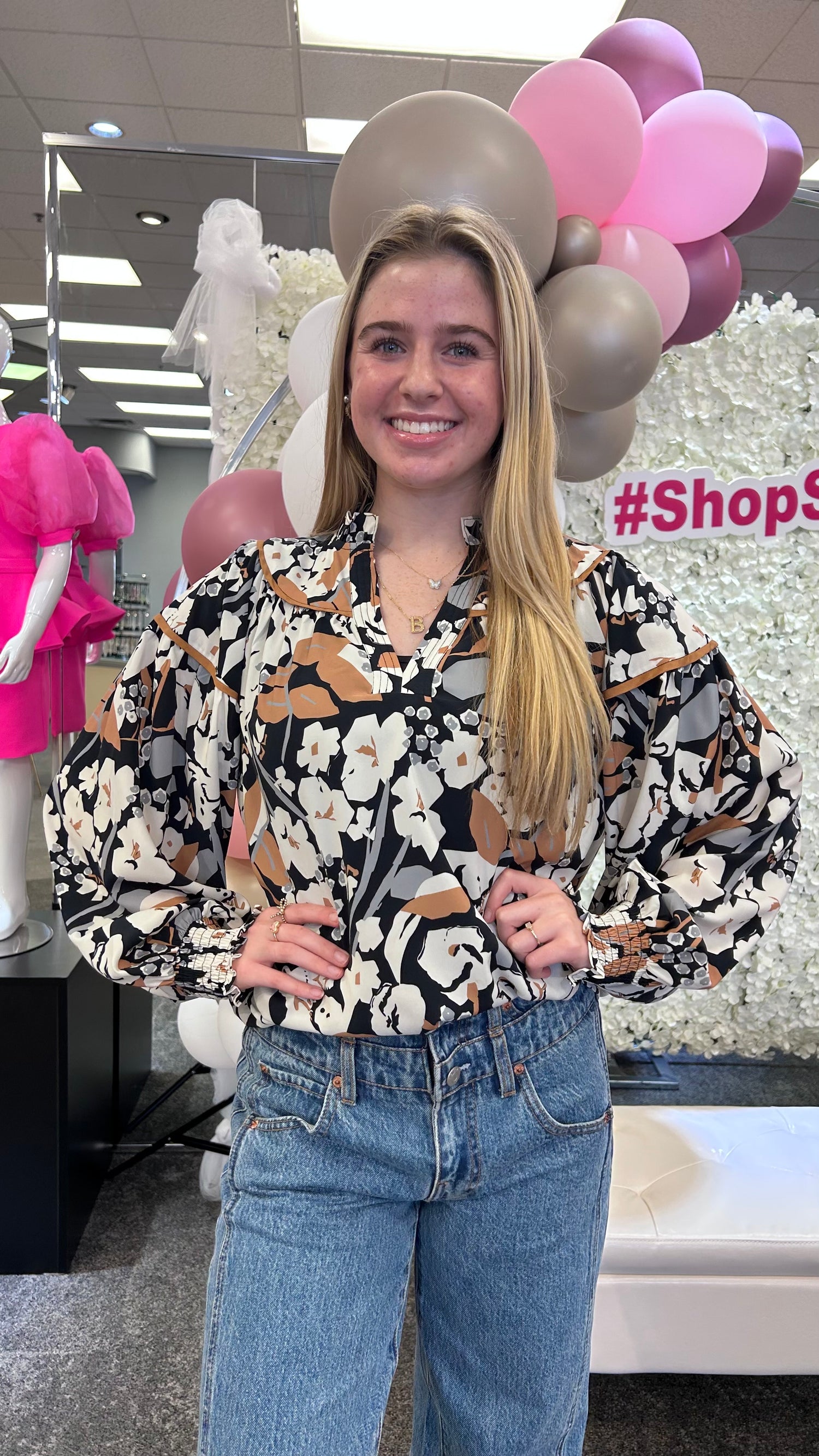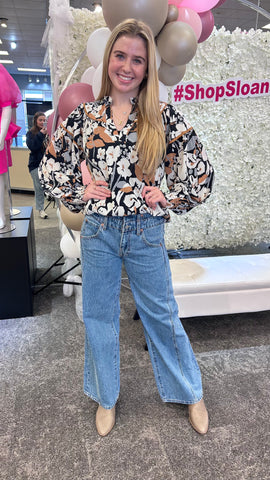 Elevate your wardrobe with this Printed Trimmed Top! Fun prints and a ruffled collar add a touch of playfulness to the classic blouse. Perfect for any occasion, this top will make a statement and keep you looking stylish! Upgrade your look today!