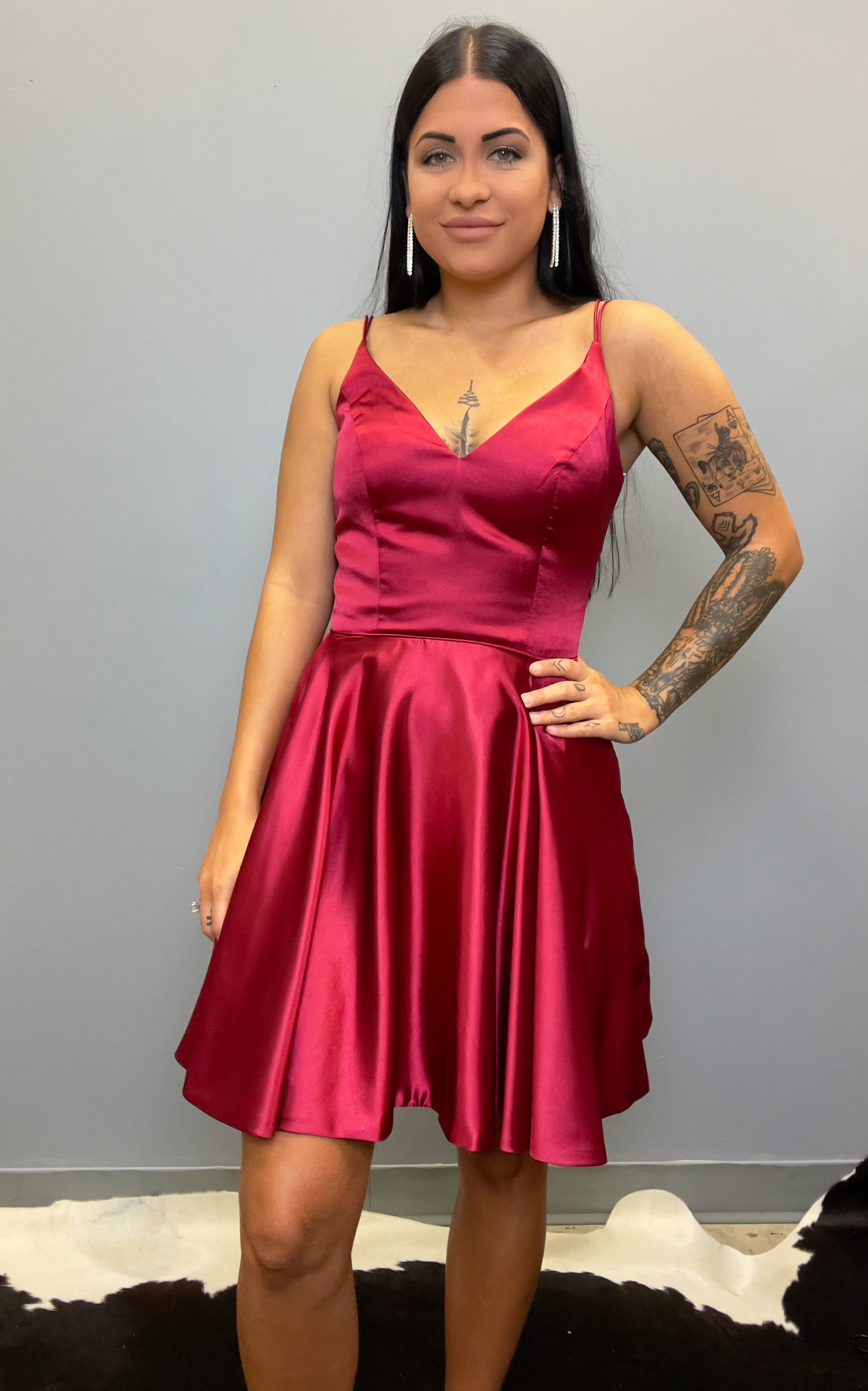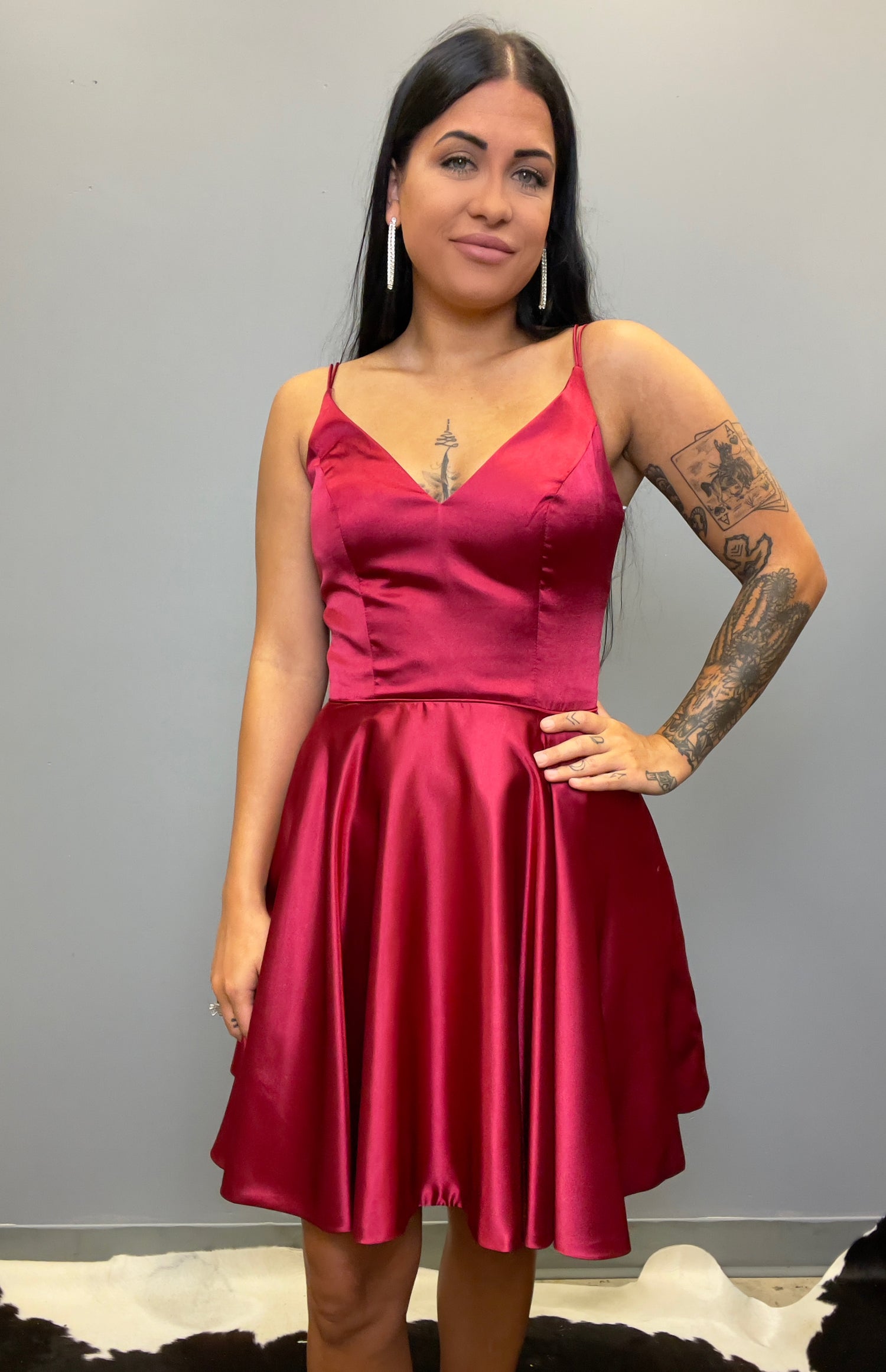 The Sherri Hill 52253 is the perfect cocktail dress for any special occasion. The charmeuse fabric is soft and lightweight, and an A-line flowy skirt flows gracefully from the V-neck top. With an elegant look and feel, this dress is designed for the special moments in life.