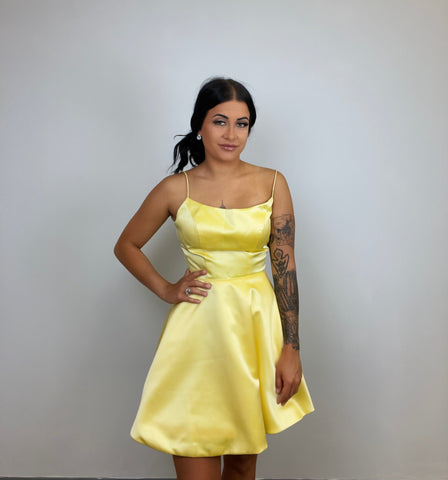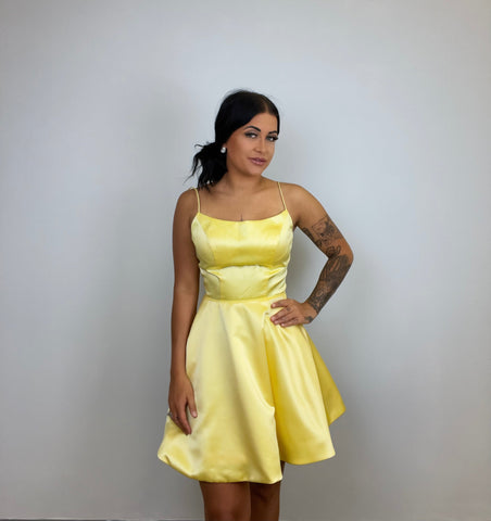 Sherri Hill 53267 is a stunning A-line cocktail dress with a corset back, made from luxurious satin. It is designed with spaghetti straps and a fit-and-flare silhouette and features convenient pockets. This formal look is sure to turn heads and make you shine.