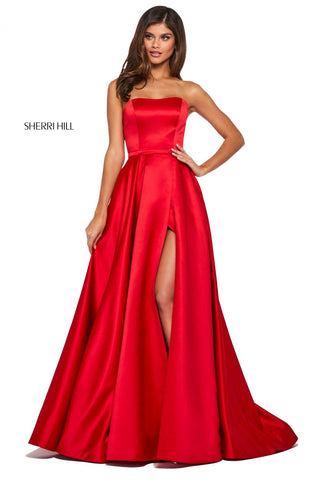 Get ready to turn heads in the stunning Sherri Hill 53307! This satin A-line dress features a flattering strapless neckline and a flowy, fit to flare silhouette that is perfect for prom, pageants, or Mardi Gras balls. Command attention with this showstopping piece!