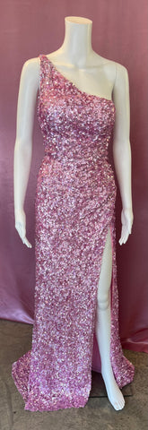 The Sherri Hill 54470 is a stunning one-shoulder evening dress crafted with intricate sequin detailing. The sleek fitted silhouette is emphasized by an elegant high front slit and back straps that will make a statement on the red carpet. Show-stopping sophistication at its finest.