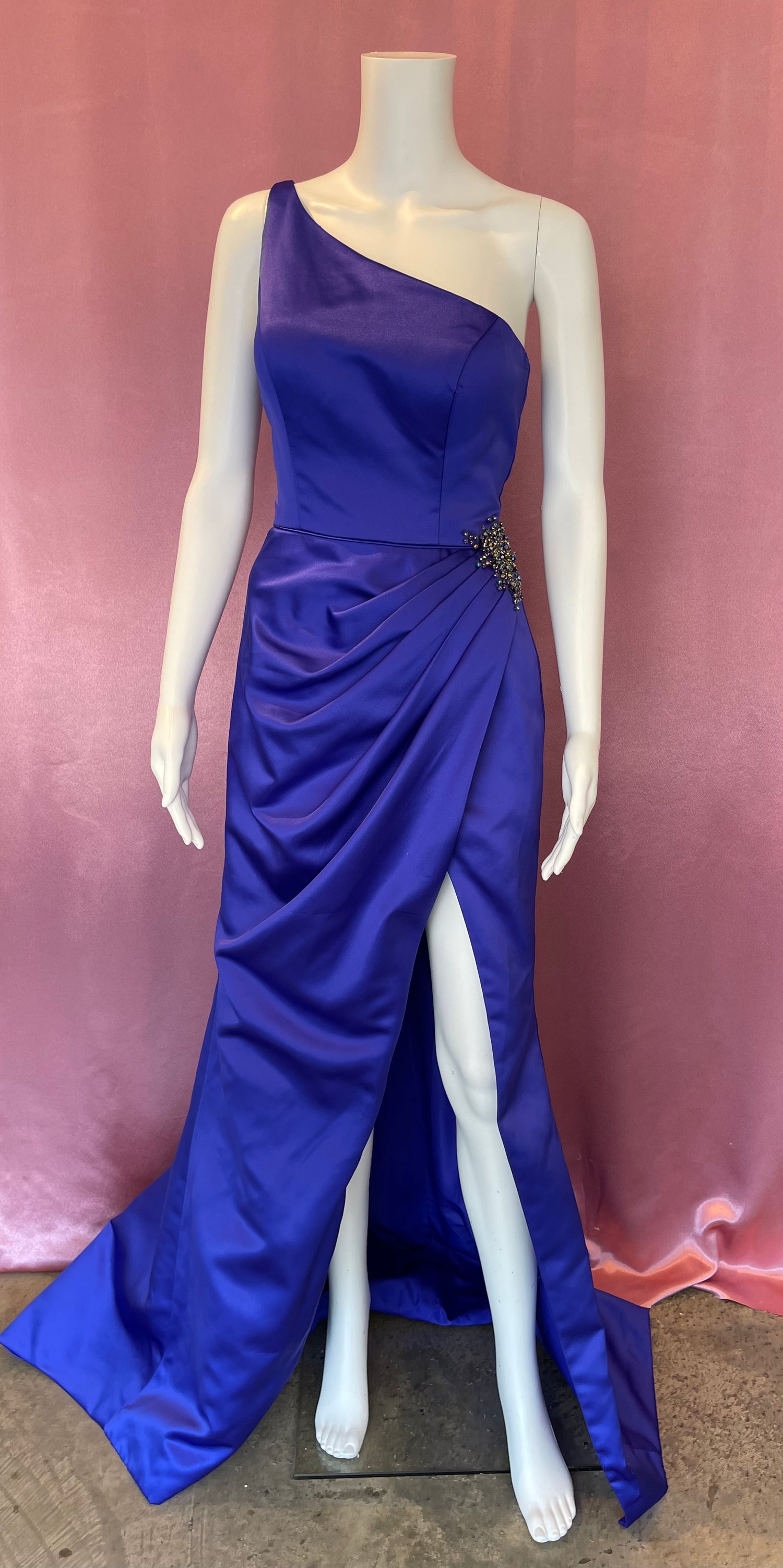 This exquisite Sherri Hill 54921 is the perfect evening gown for any special occasion. Crafted from luxurious silk, the dress features a single shoulder strap and beautiful beading detailing on the waistline. It is also finished with a delicate side slit that adds extra elegance and a touch of glamour.