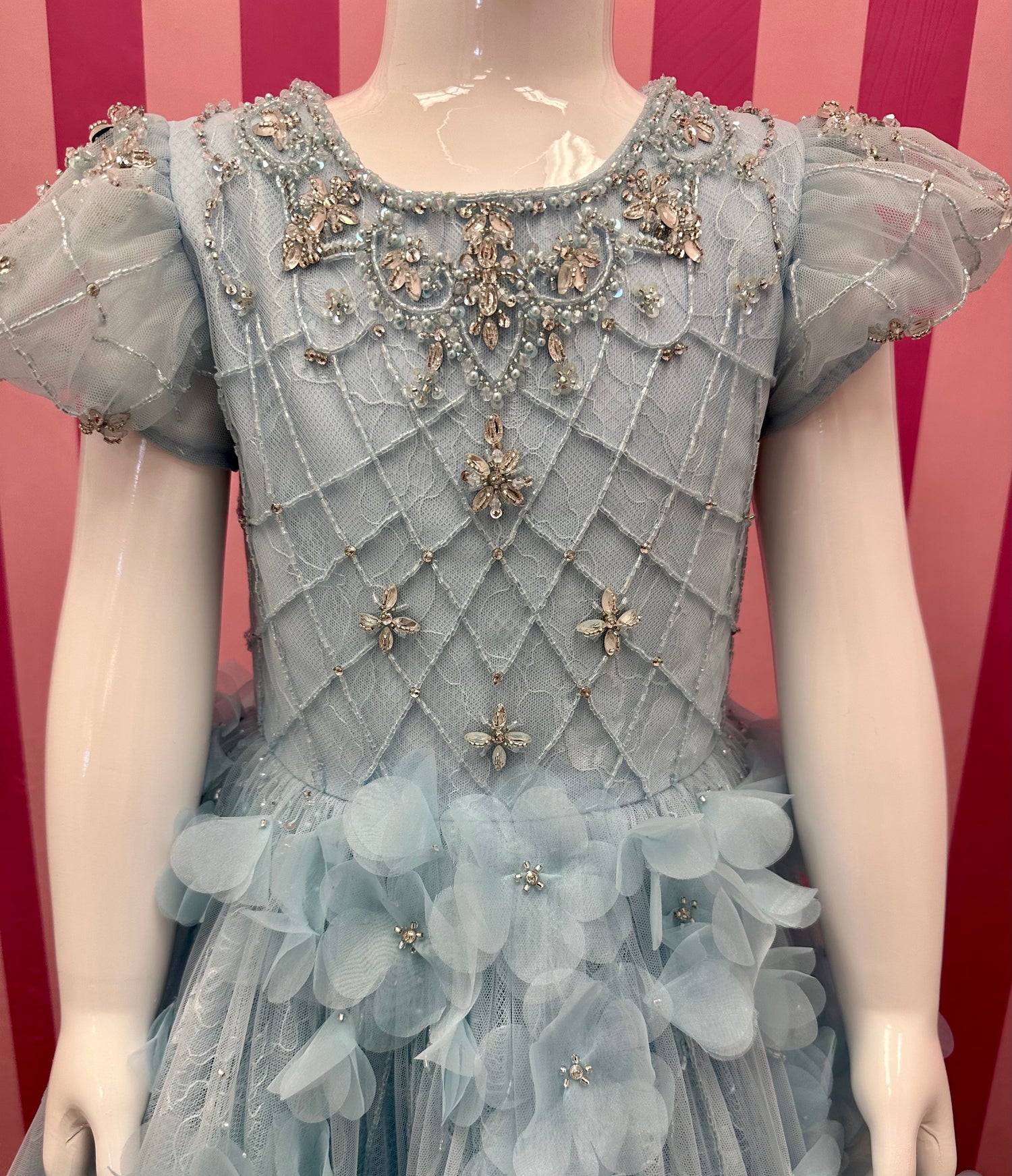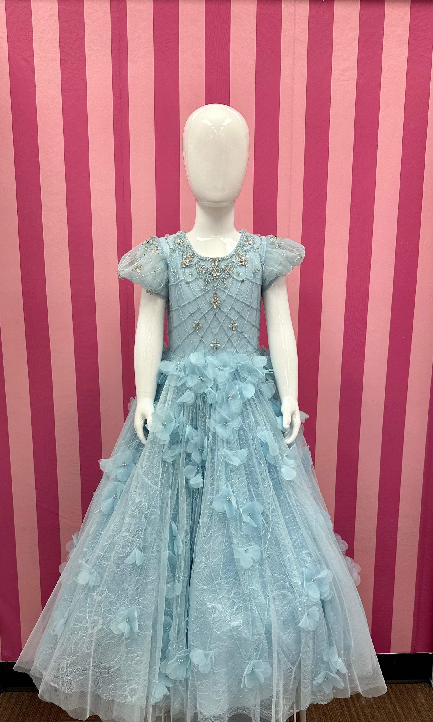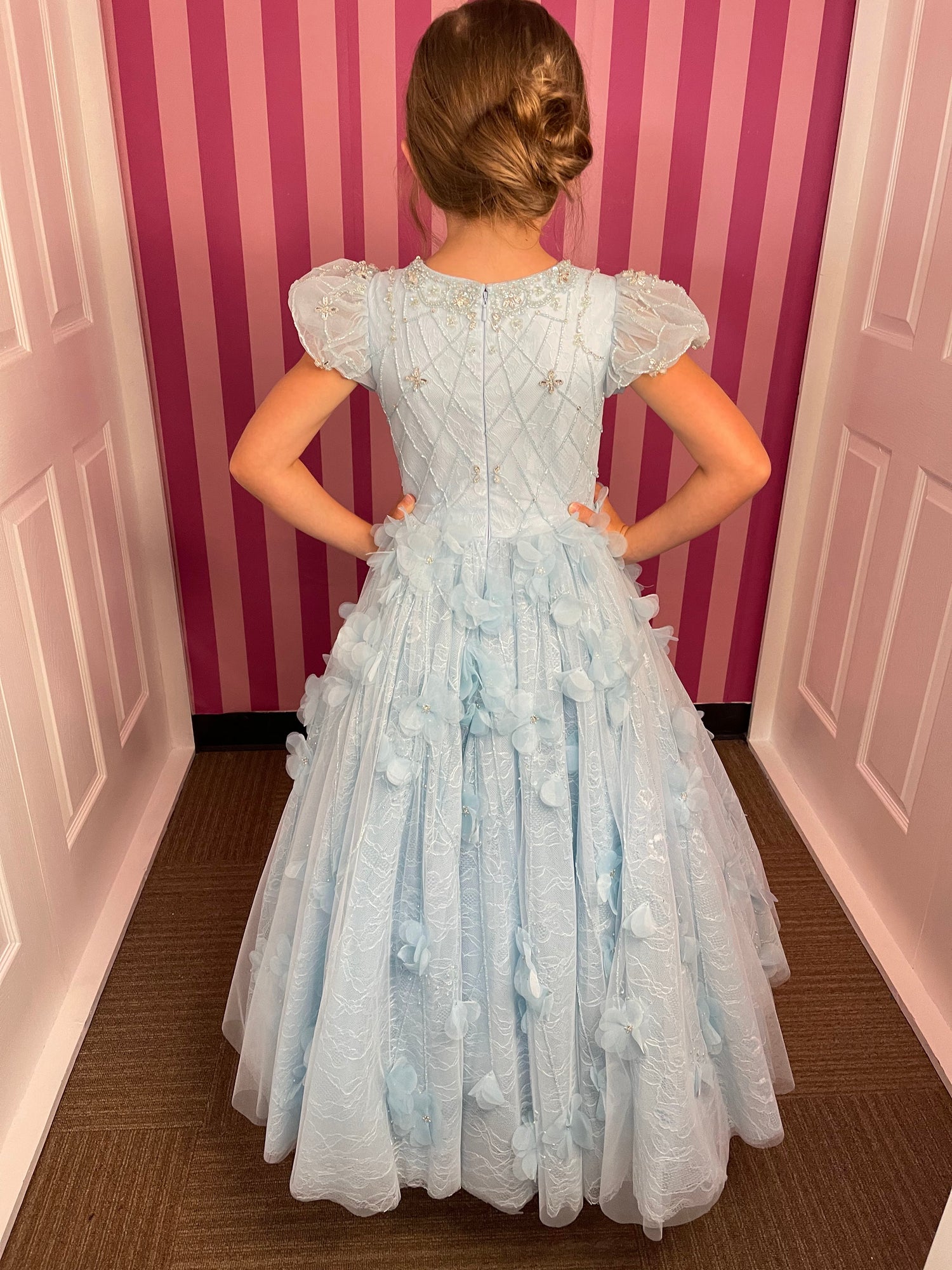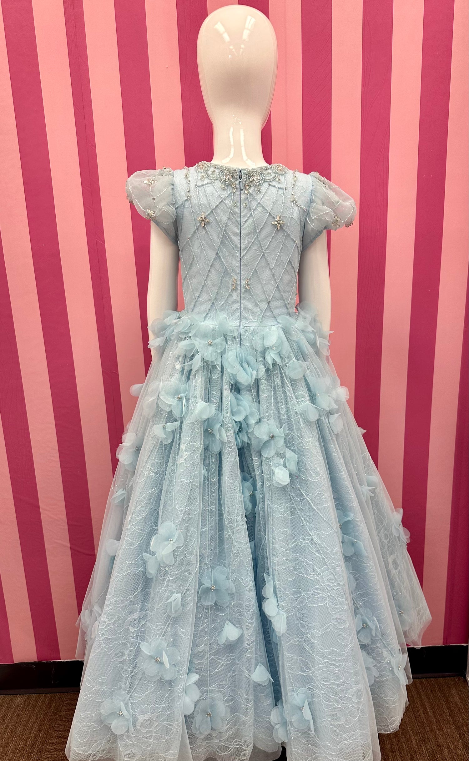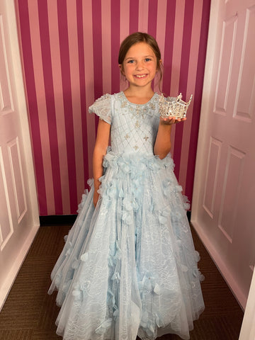 Your little girl will be the center of attention in the Sherri Hill K91824. This gorgeous pageant gown features light, flowy fabric adorned with delicate silver beading and tiny flowers, creating a magnificent ensemble. It's a high-neck design that's both stylish and comfortable, making it ideal for any occasion!