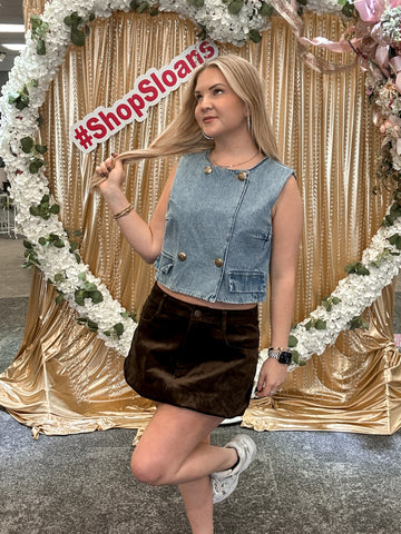 Pair the Simona Skirt with a tucked-in bodysuit and blazer for an elevated city-ready outfit, or keep it casual with a cropped sweater and ankle boots for effortless style.
