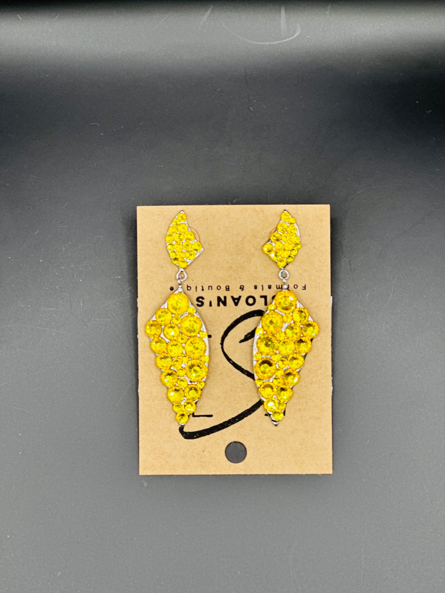 These Anise earrings are a small dangle that is perfect for a pageant or a special night out. They feature multi sized stones to highlight your beauty, and in a custom color that you can choose.