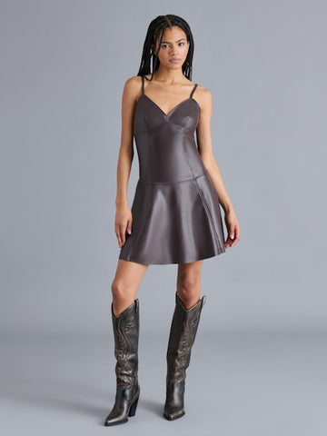 Make a bold statement with the Steve Madden Abbott Dress in Brown, a sleek faux-leather mini dress that perfectly balances edgy and feminine style. Designed with a flattering A-line silhouette and chic details, this dress is your go-to for nights out, special occasions, and head-turning moments.