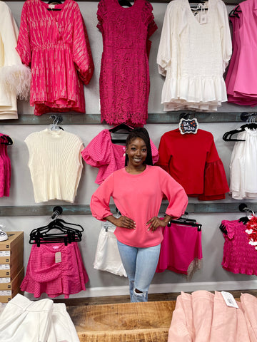 Add a touch of sweetness to your wardrobe with our Strawberry Sherbet Top. Made with a soft and lightweight fabric, this new arrival from our boutique collection features elegant French twist sleeves in a beautiful pink color. Perfect for a casual yet chic look.