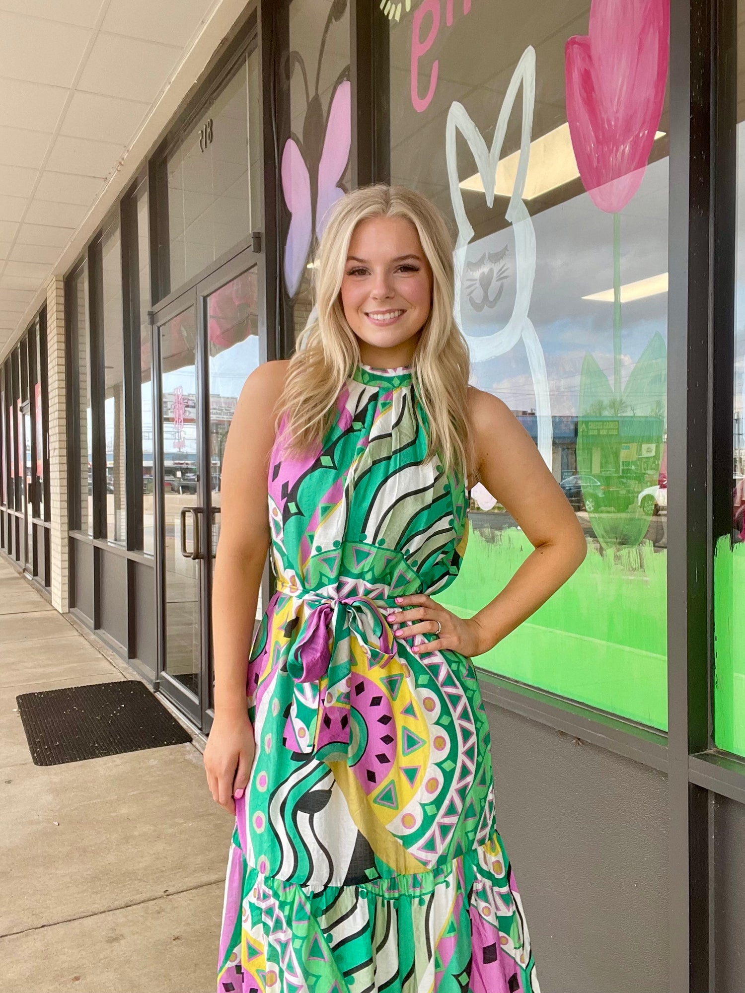 Elevate your wardrobe with The Aztec Dress! This stunning maxi dress, featuring an intricate Aztec design, is perfect for any spring or summer occasion. From weddings to a day out at the boutique, you'll turn heads and feel effortlessly chic. Don't miss out on this stylish must-have!
