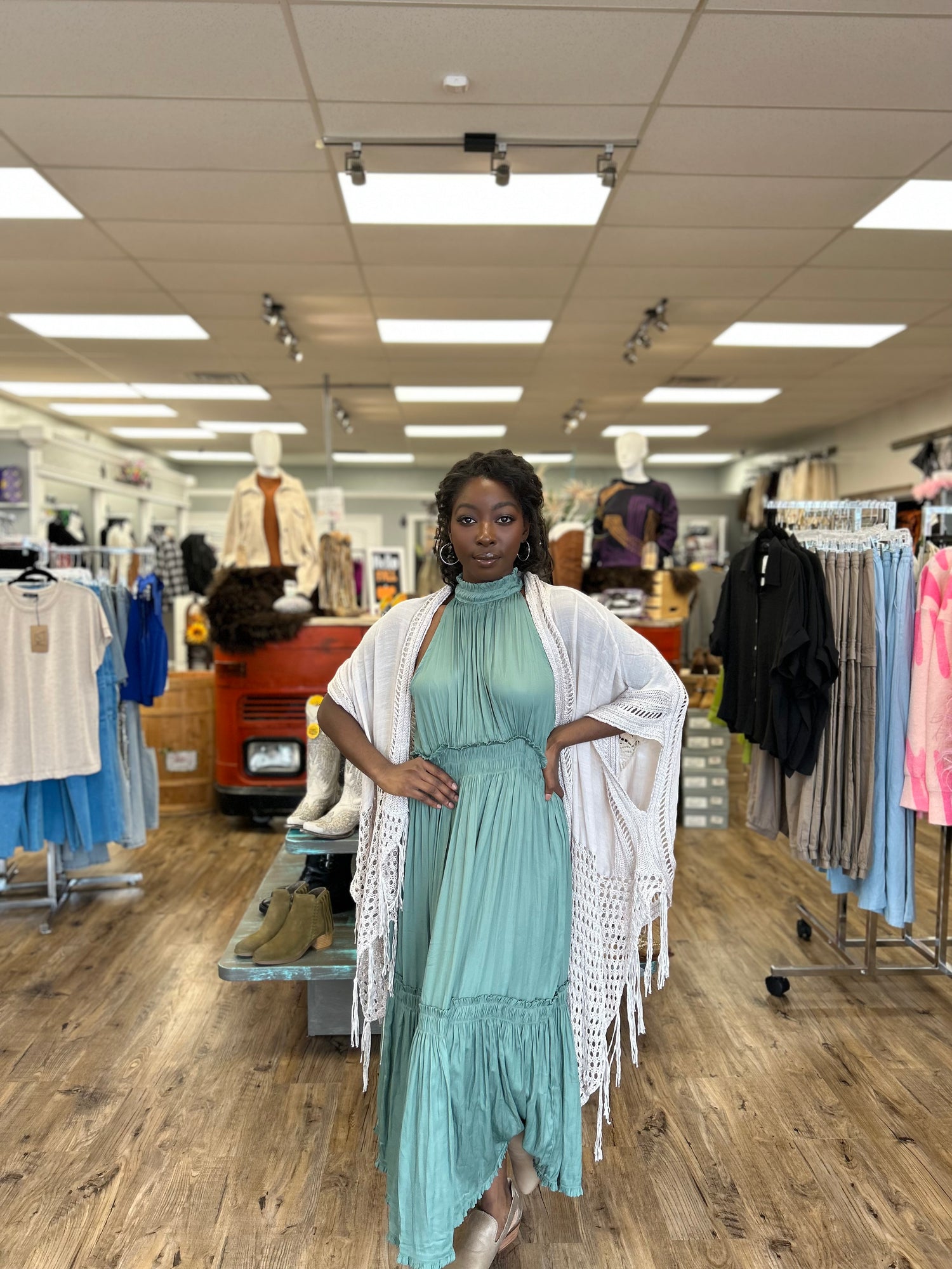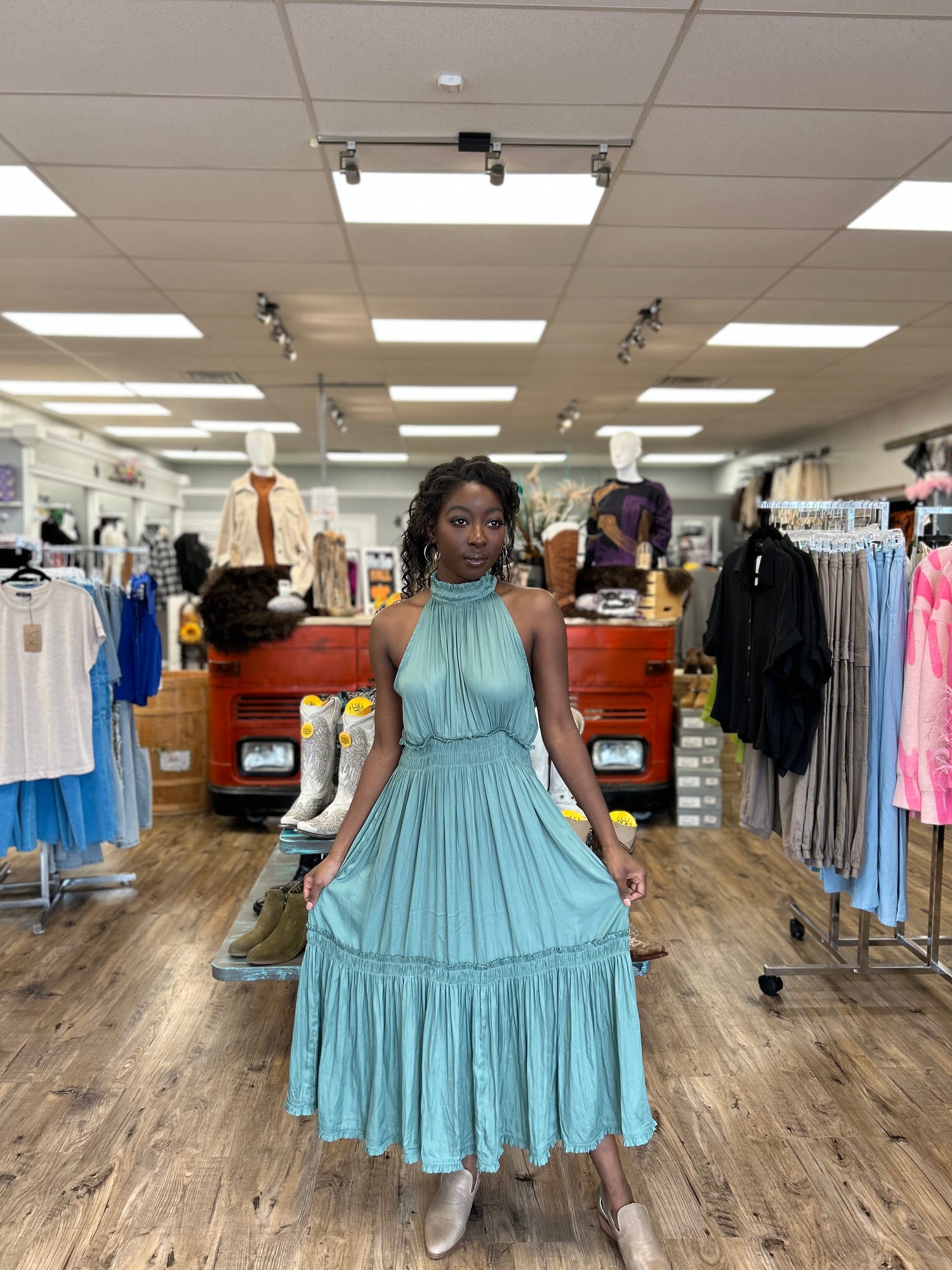 Get ready to turn heads all summer long with our Summer Breeze Dress! This lightweight and flowy maxi dress features a trendy halter top design, perfect for staying cool and stylish on hot days. Embrace the carefree vibes of summer with this must-have dress. (Pun intended!)