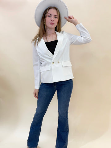 Add a touch of sophistication to your wardrobe with our Elegance In Ivory Blazer. Made from durable polyester, this beautiful blazer is perfect for any occasion. Its crisp white color, stylish buttons, and convenient pockets make it a must-have for any fashion-forward individual. Upgrade your look with this elegant piece!
