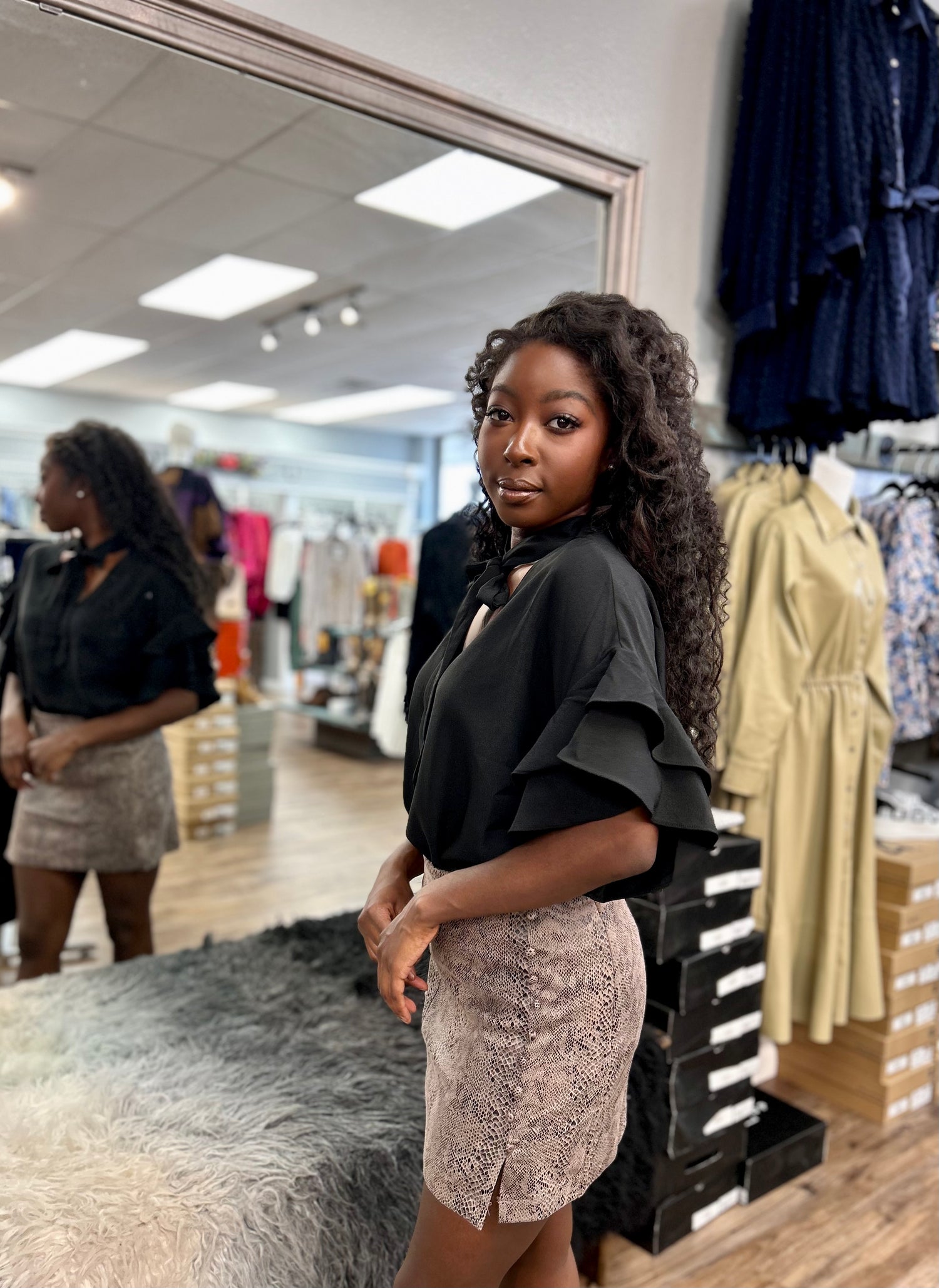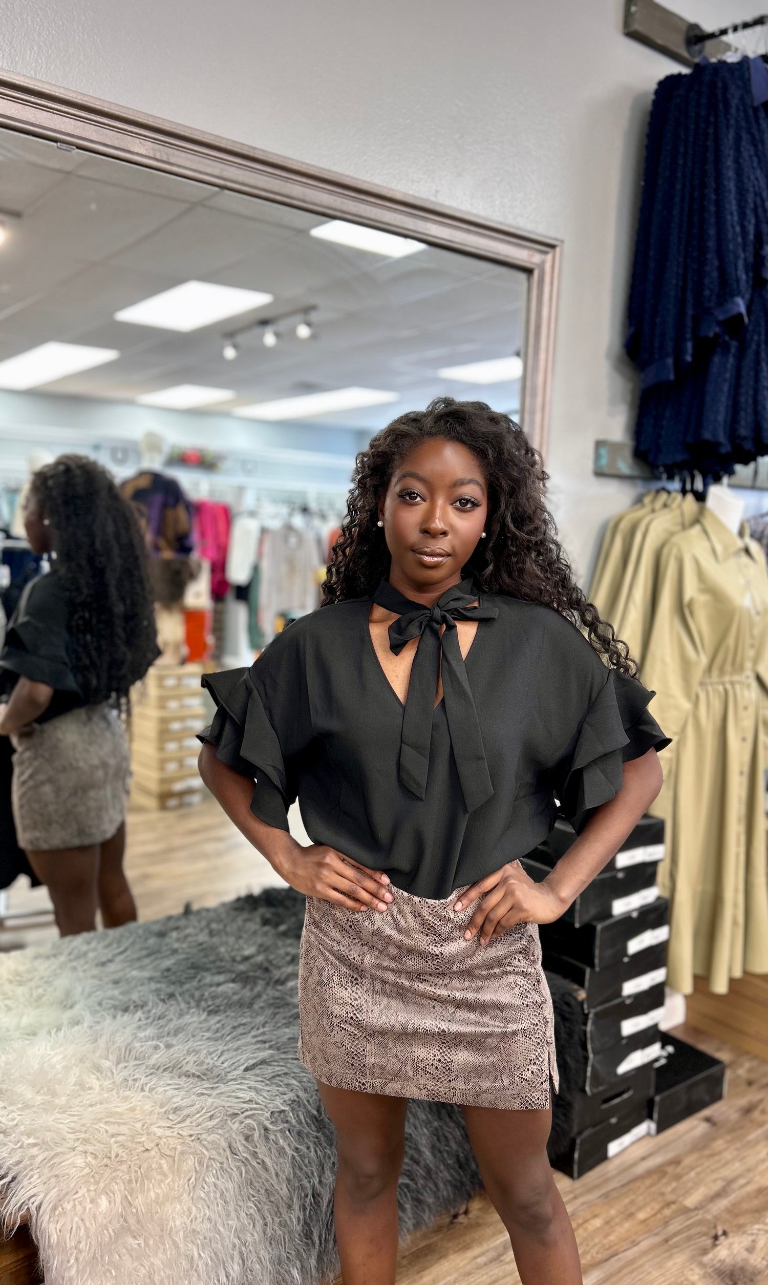 The Damon Top is the perfect blend of fashion and head-turning style! Featuring short, ruffle sleeves and a tie in the front, it'll make any look stand out. With an eye-catching V-neck and intricate boutique detailing, it'll take your wardrobe to the next level.