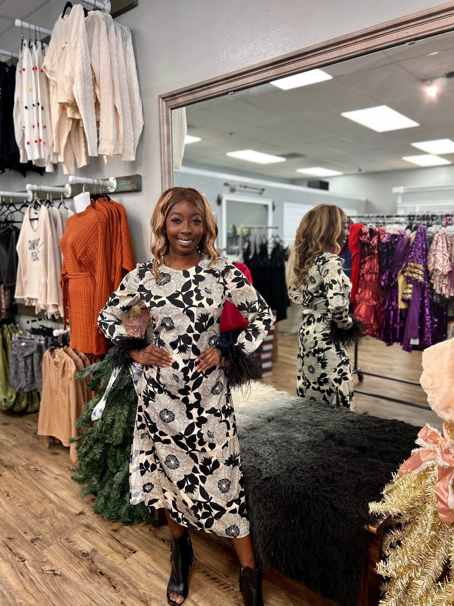 Luxuriate in the elegance of The Ella Top, a sophisticated long-sleeved blouse featuring a cuff neck, button back, and alluring floral print. Perfect for festive occasions or a night out, Ella makes the perfect addition to your boutique wardrobe.